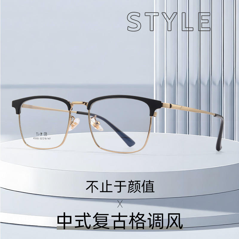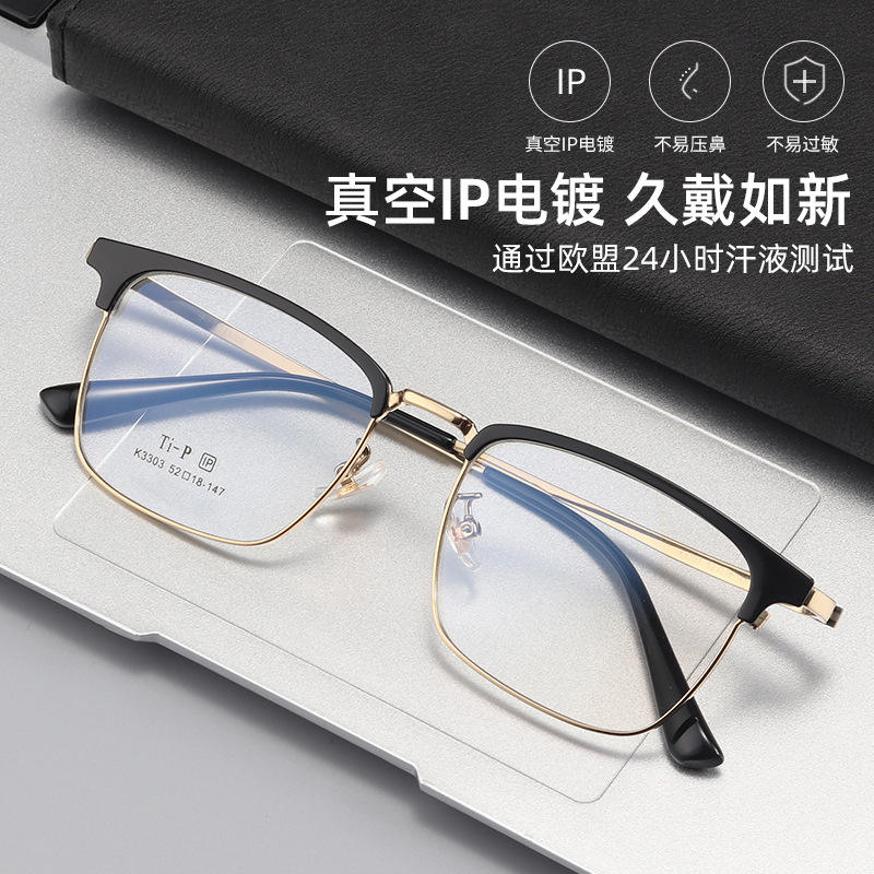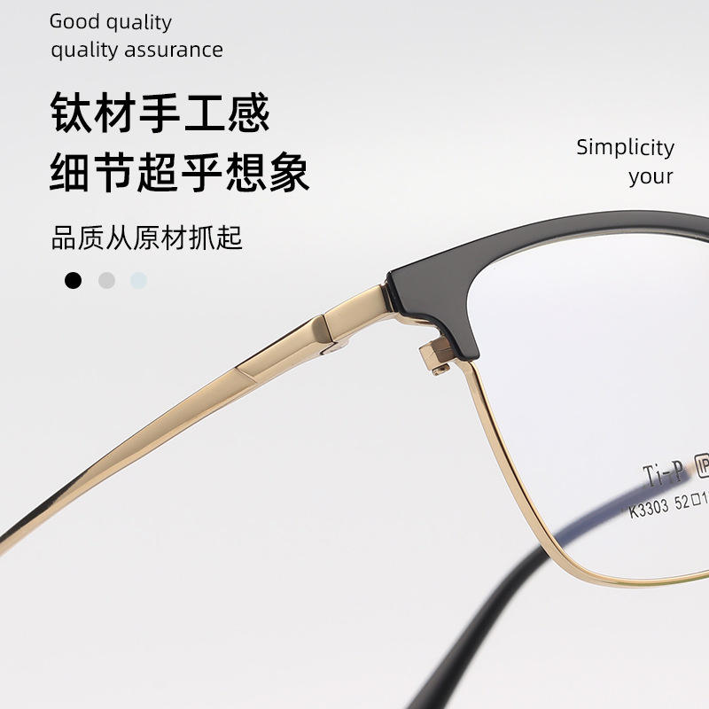 Monture de lunettes carrée en titane pour homme T-P 3303, légère, monture complète, verres en résine, style professionnel