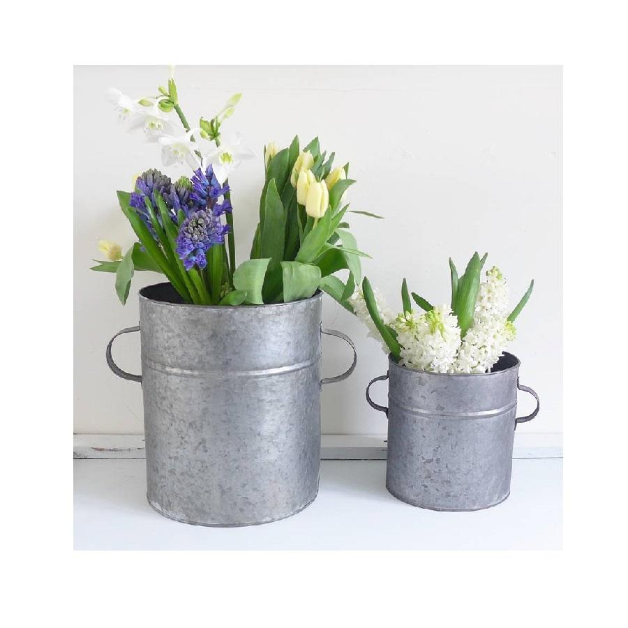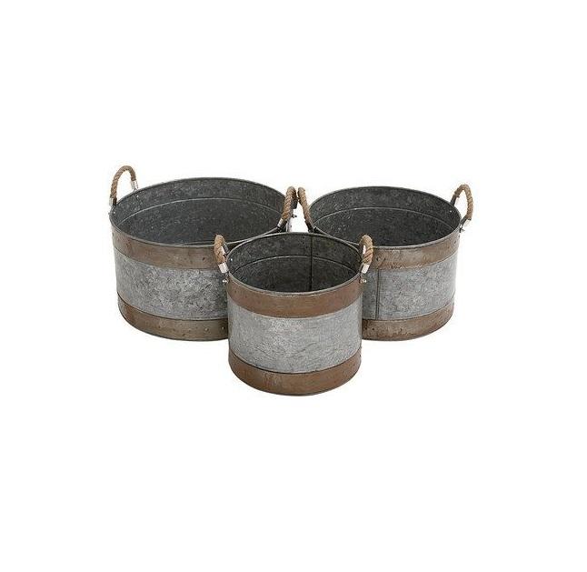 Description:Galvanized Iron Round Planter With Handles Acid Finishing