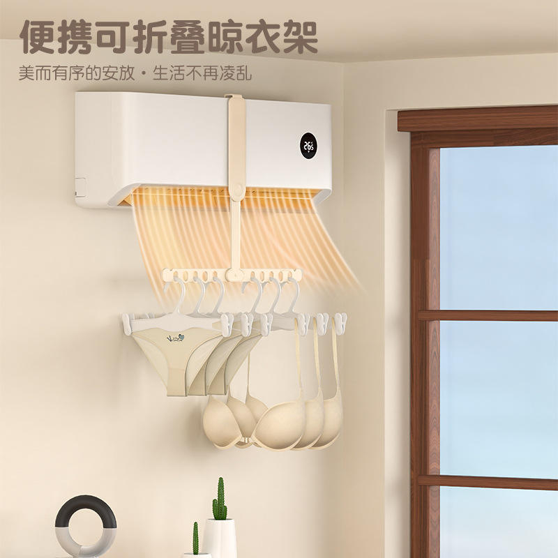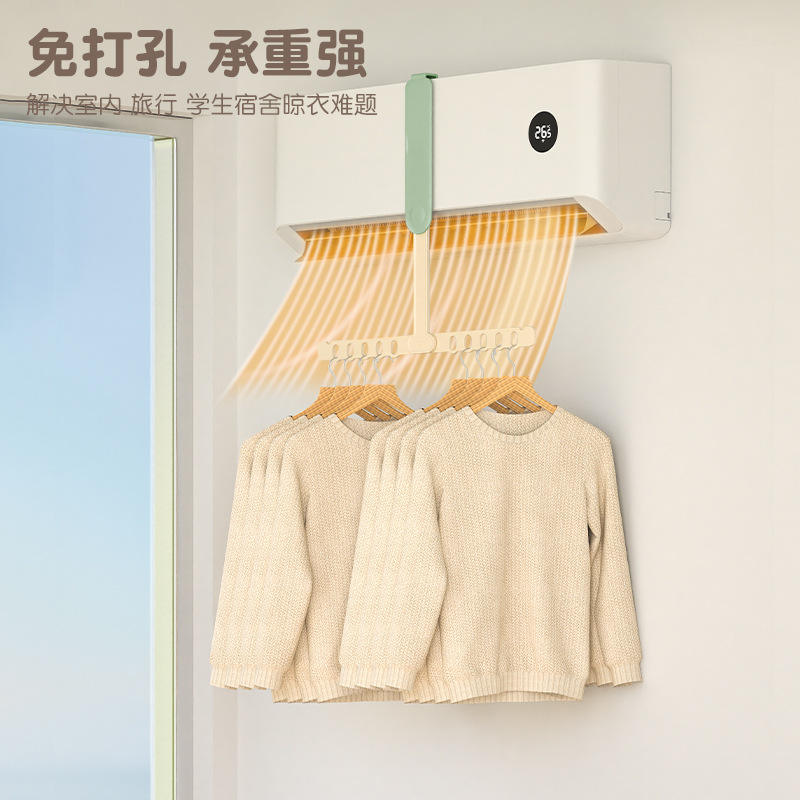 T-Shaped Clothes Drying Rack With Hanger Hook Type For Air Conditioner Use Cream Color Rectangle Design