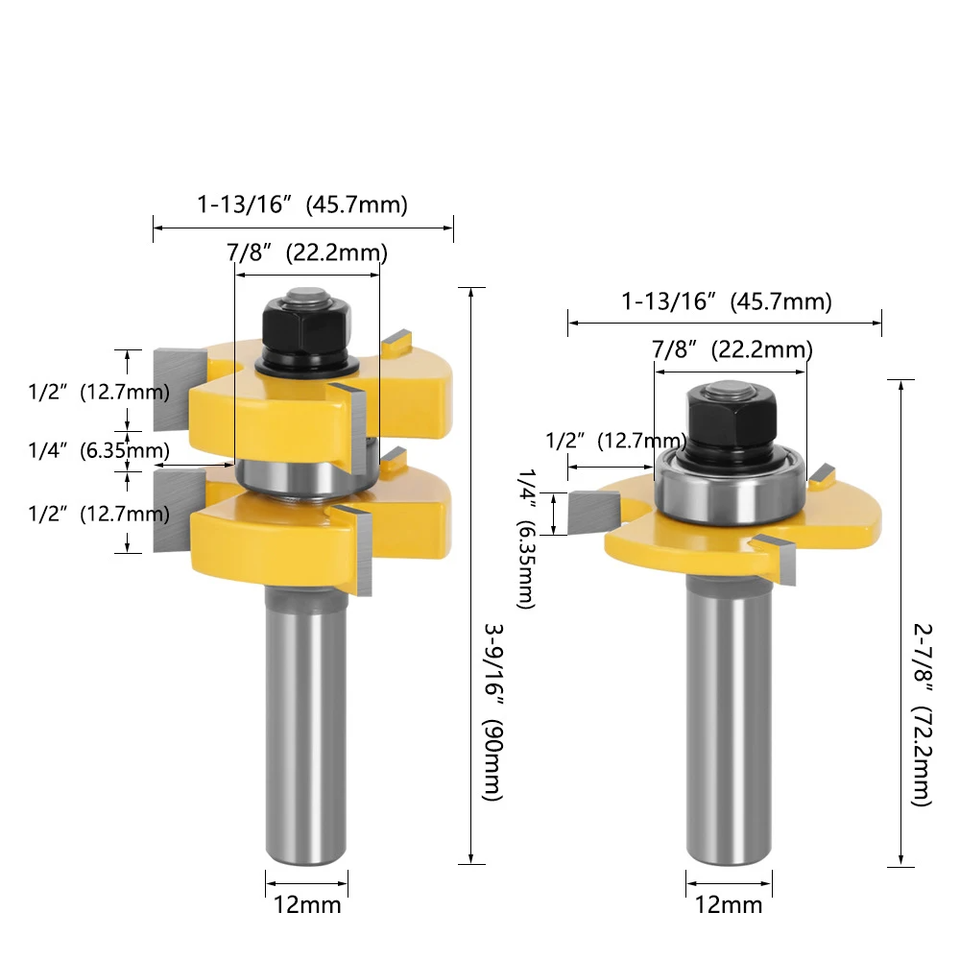 2PCS 12mm Shank Tongue & Groove Joint Assemble Router Bit Set