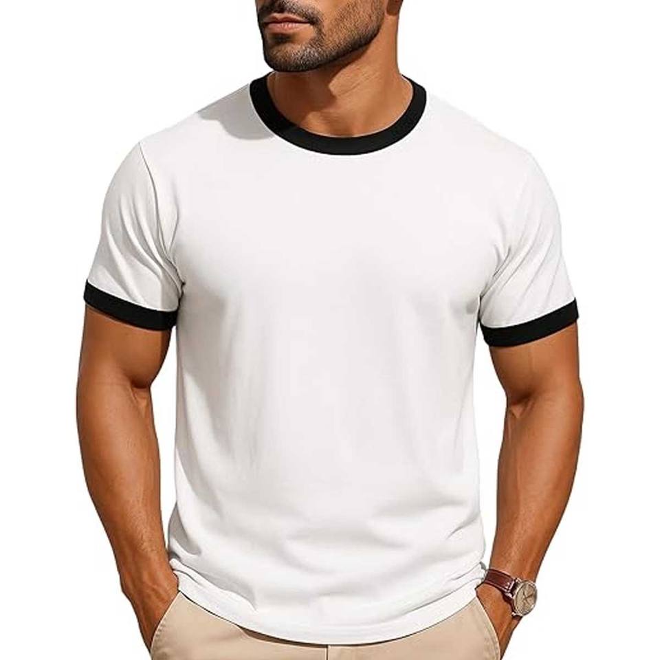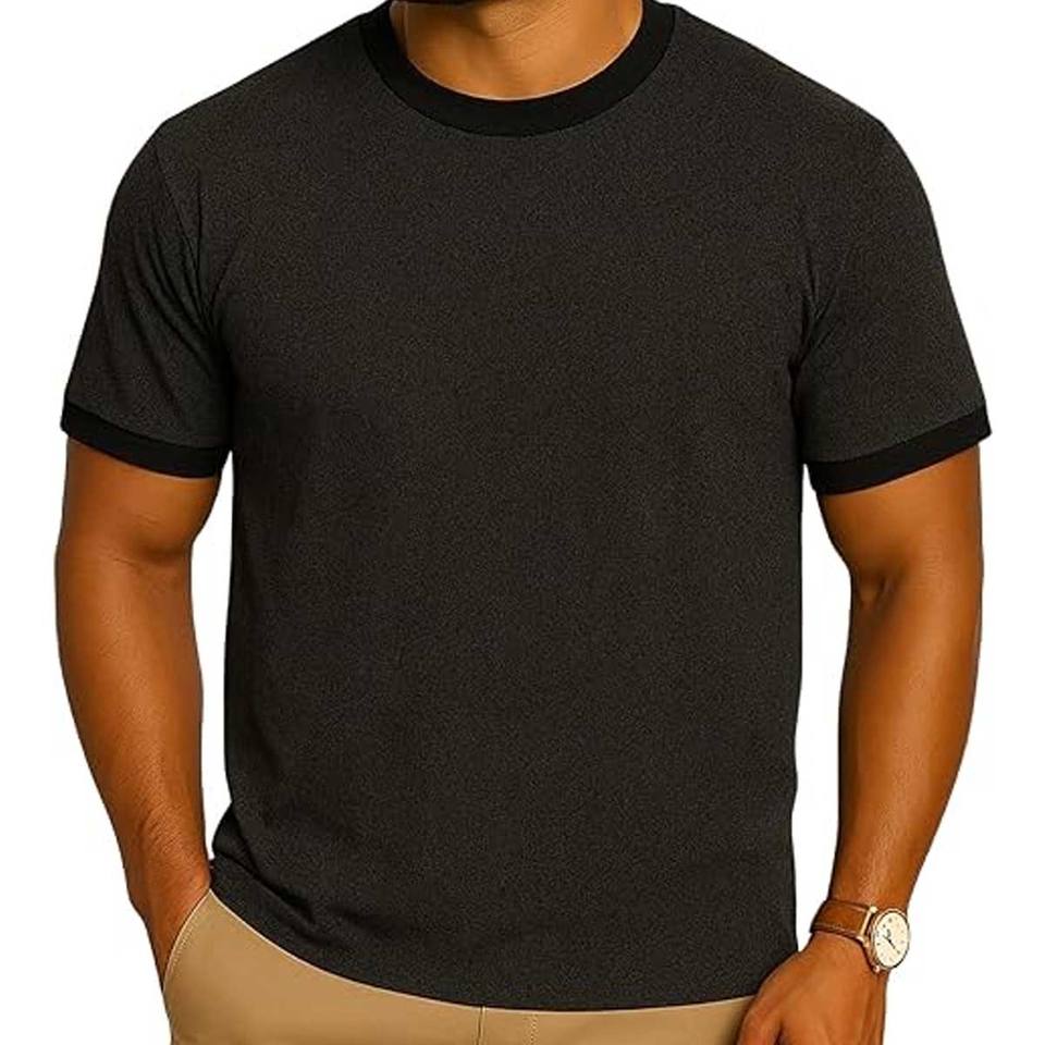 T-Shirt Homme Manches Courtes Froid O-Neck Stretch Séchage Rapide Respirant Sports100 % Coton Ringer T-shirts