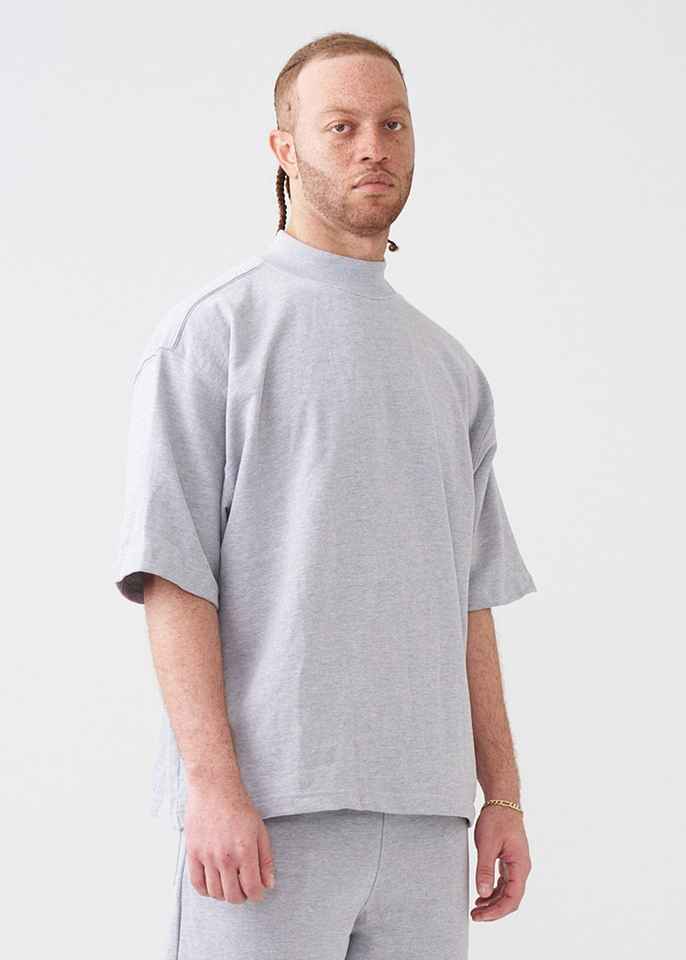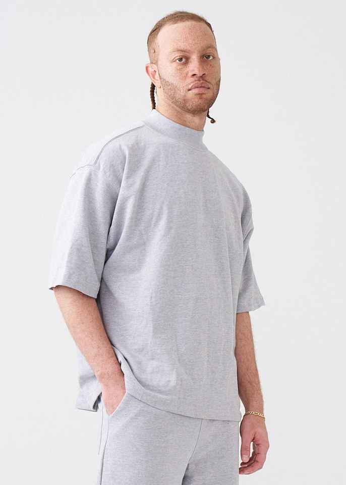 T Shirt Homme Personnalisé Surdimensionné Boxy T Shirt Rib Peached French Terry Woven Cotton Mock Neck Drop Shoulder Heavyweight T Shirt