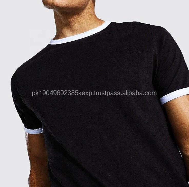 T-shirts Ringer à col ras du cou pour hommes, marque privée, manches ajustables, t-shirts décontractés coupe slim 200 GSM pour homme