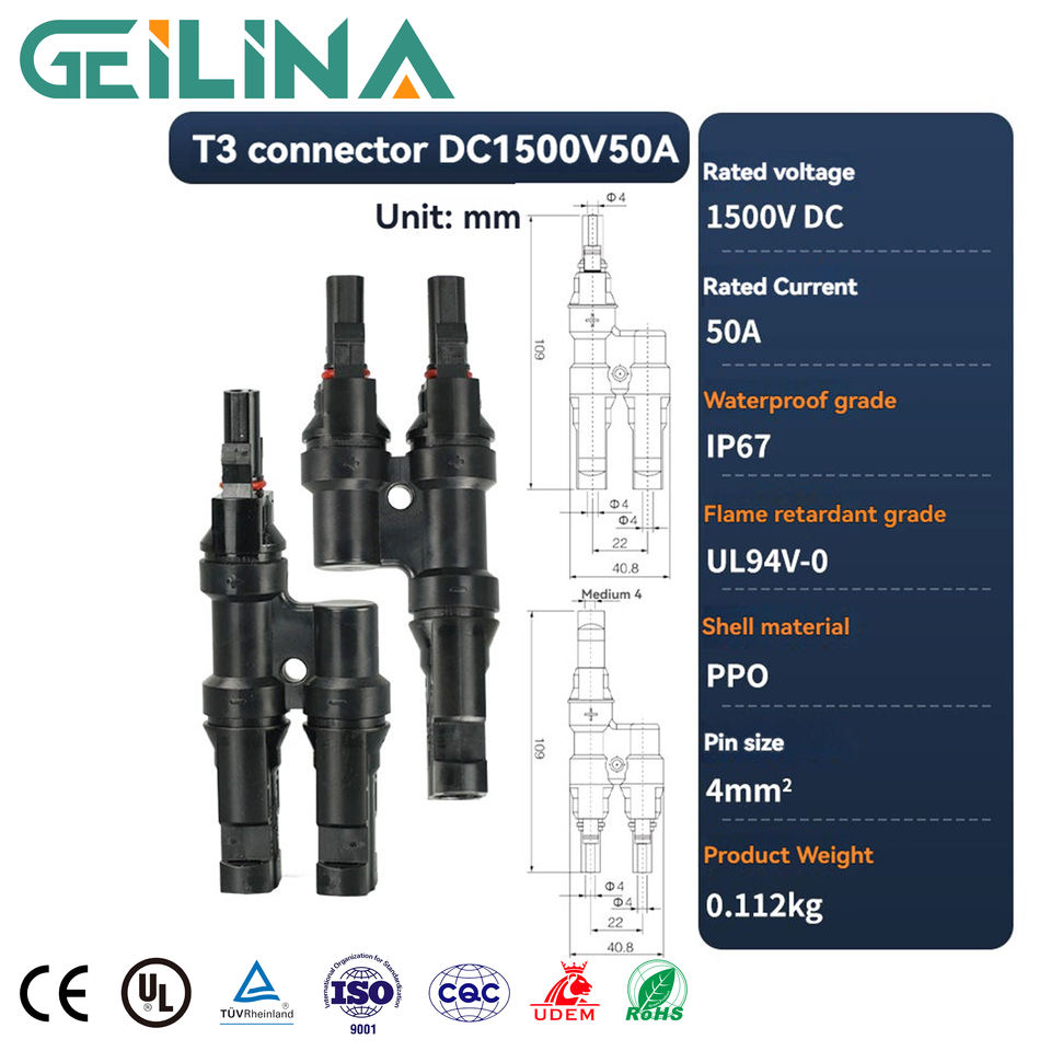 Connecteur solaire photovoltaïque en T étanche IP67 1500V DC T3 T4 T5 T6 T7 mâle-femelle pour applications d'alimentation