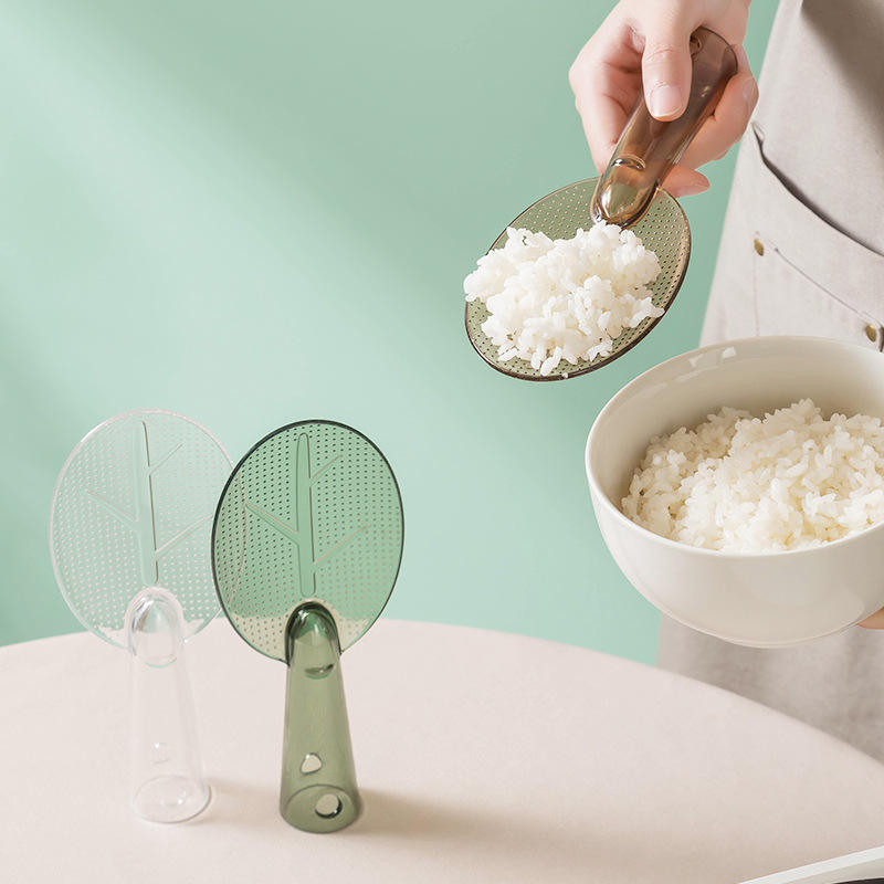 Cuillère à riz en forme de T, transparente, blanche, vert frais, orange vibrant, en plastique antiadhésif, portable, pour cuiseur à riz, usage domestique