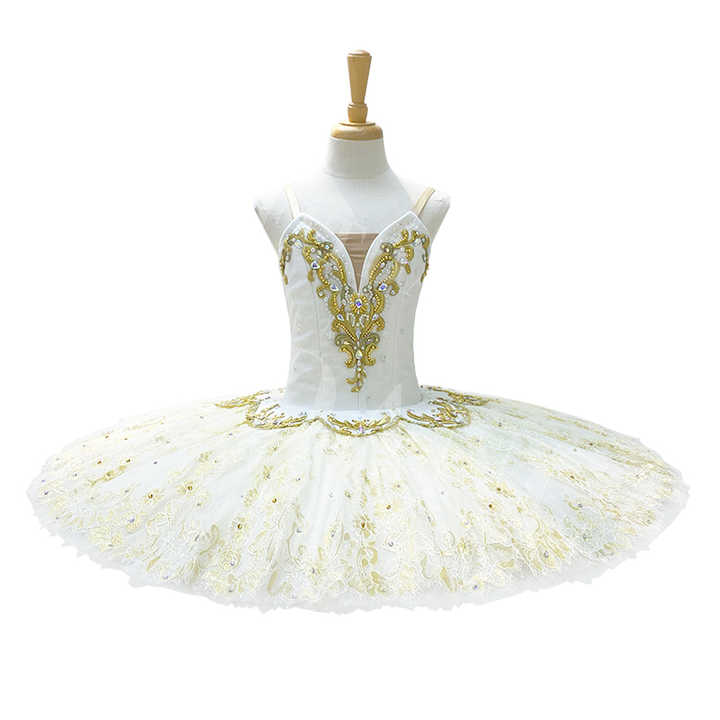 Tutu de ballet professionnel personnalisé Blanche-Neige, blanc et or, pour Paquita et Don Quichotte