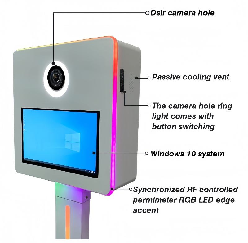 Caméra T12 LED Open Air Blanc Matrice Métal Numérique LCD Glam Bot Photobooth DSLR Photomaton avec Filtre Glam