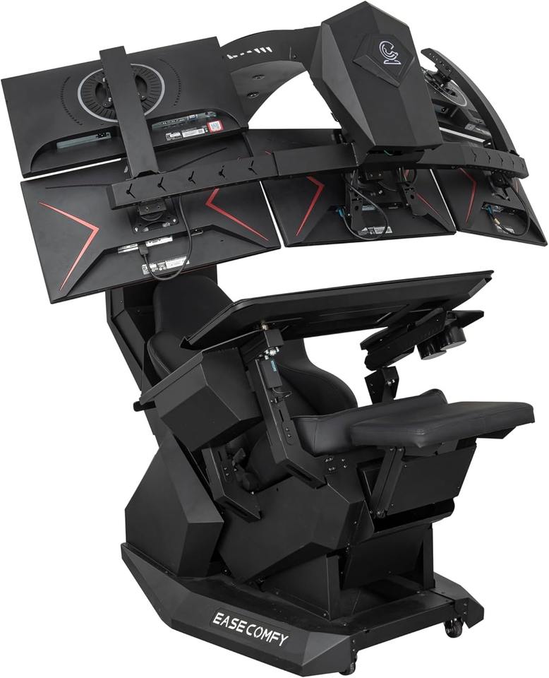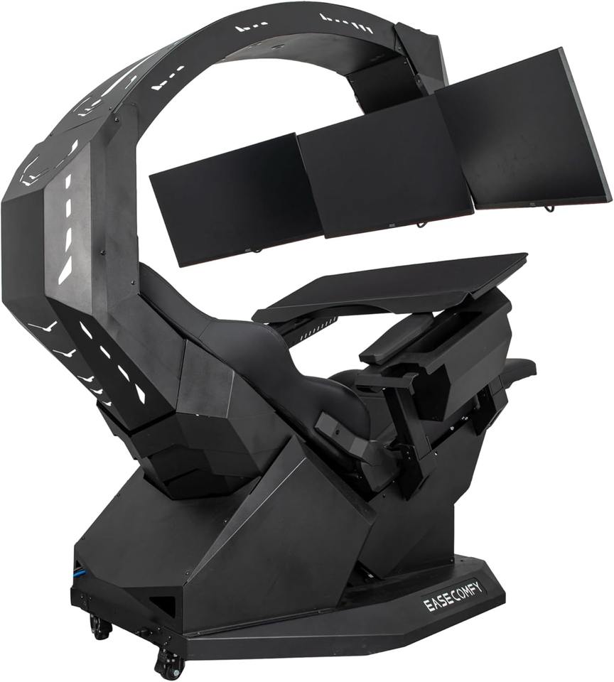 Poste de travail informatique T2 Throne pour 3 moniteurs, chaise zéro gravité, extensible pour 5 moniteurs, prend en charge l'écran ultra-large