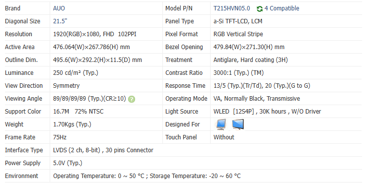 Resolution:1920(RGB)*1080 FHD 102PPI