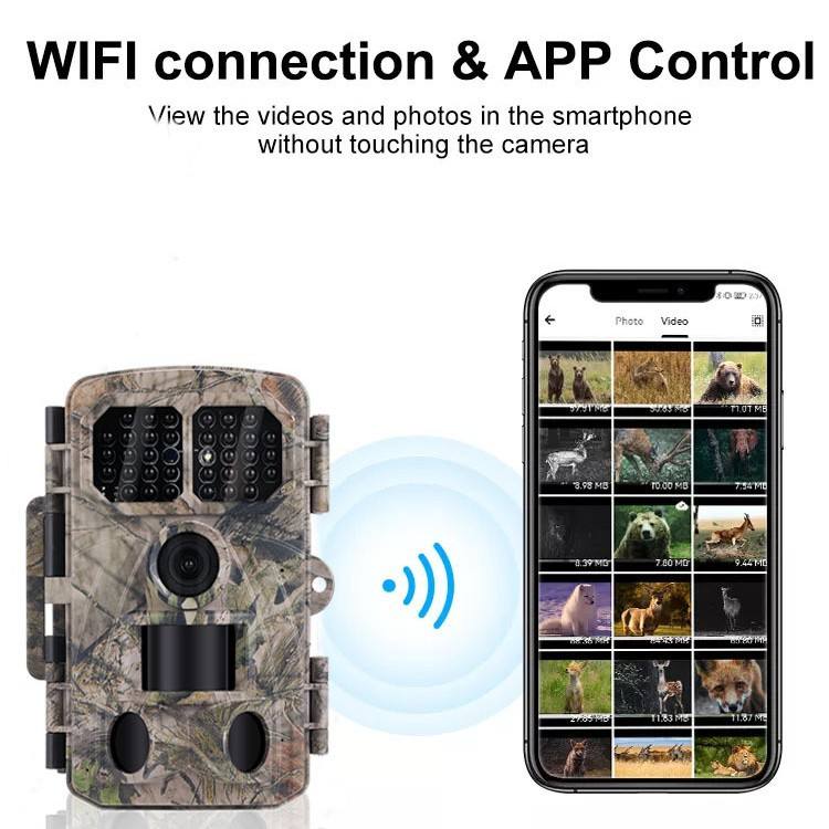 Caméra de surveillance T680W 4K 30FPS, caméra de chasse, 100m WiFi BT, IP66 étanche, vision nocturne infrarouge, caméra de sécurité pour la faune en extérieur