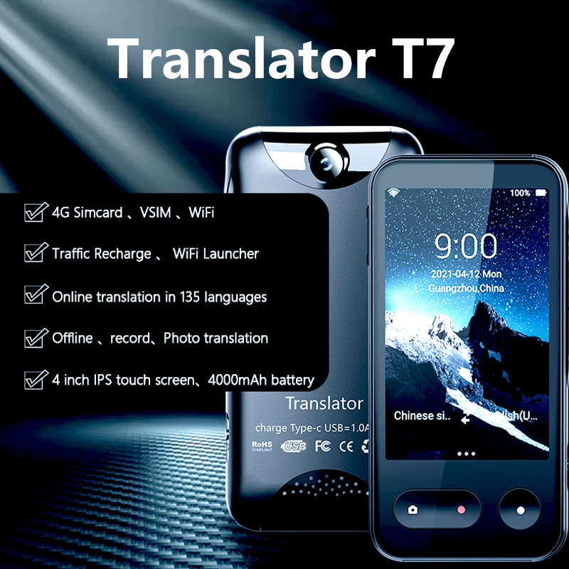 Écran tactile, Wifi, Traduction en ligne, Traduction hors ligneDispositif