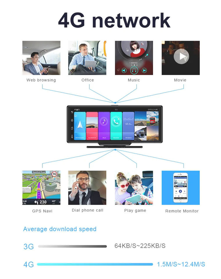 Vision nocturne, G-sensor, MODE park, Enregistrement en boucle, Intégré WiFi, Détection de mouvement, GPS INTÉGRÉ, D'urgence Accident Serrure, Batterie IntégréeFonction