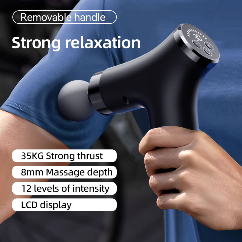 Pistolet de massage sans fil TAHATH Mini pour tissus profonds, avec poignée longue détachable, 12 niveaux de vitesse, télécommande sans fil, portable pour le corps et le cou