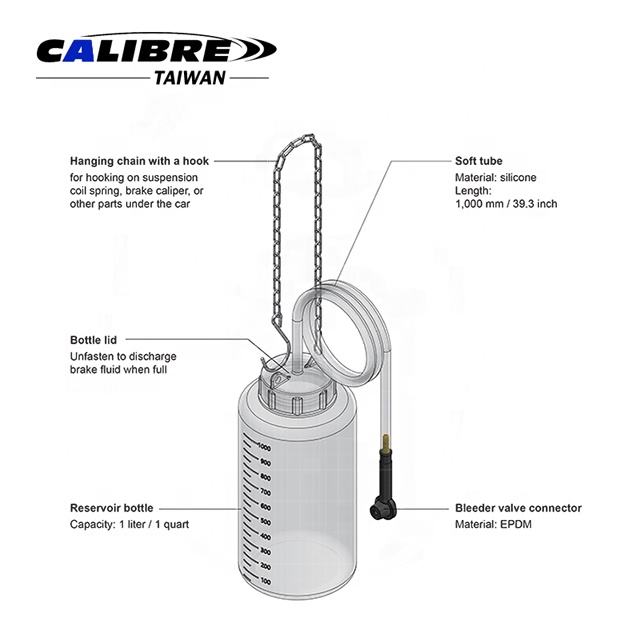 Kit de purge de liquide de frein pour une personne TAIWAN CALIBRE 1L avec crochet de chaîne, matériau ABS blanc