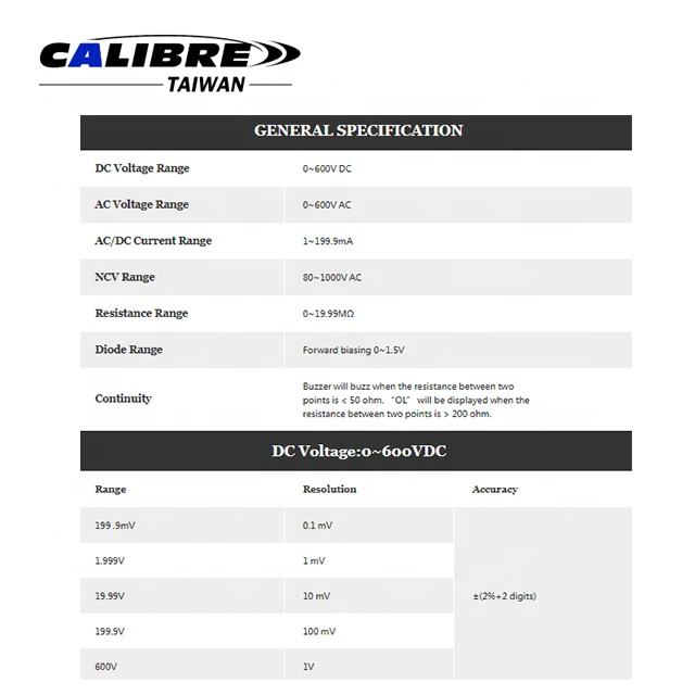 DC Actuel, Tension AC, DC Tension, Diode, Résistance, Courant ACParamètres mesurés