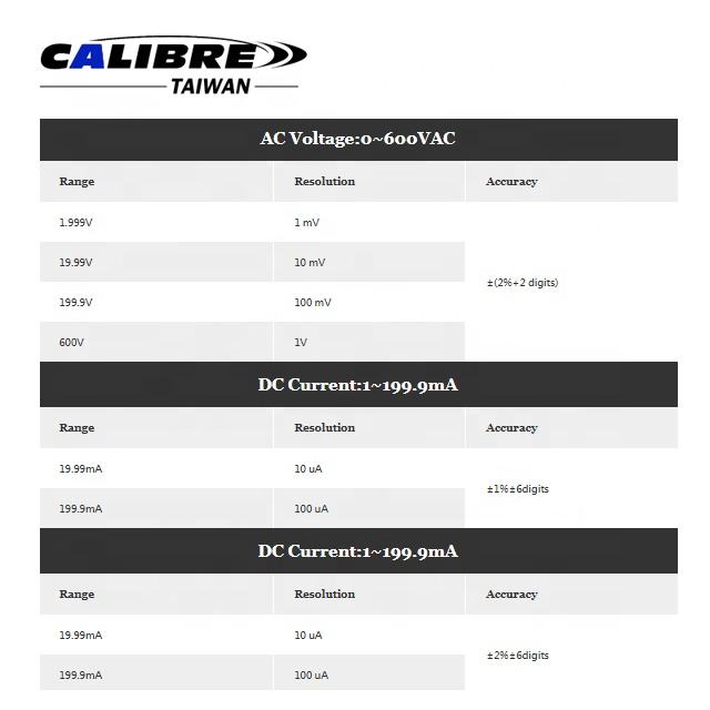 Gamme actuelle d'AC/DC:1-199.9mA