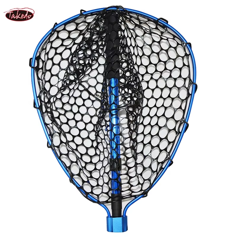 TAKEDO DS01 Filet de pêche à la mouche pour carpe de haute qualité Filet d'atterrissage de pêche Poignée en aluminium Filets de pêche en caoutchouc