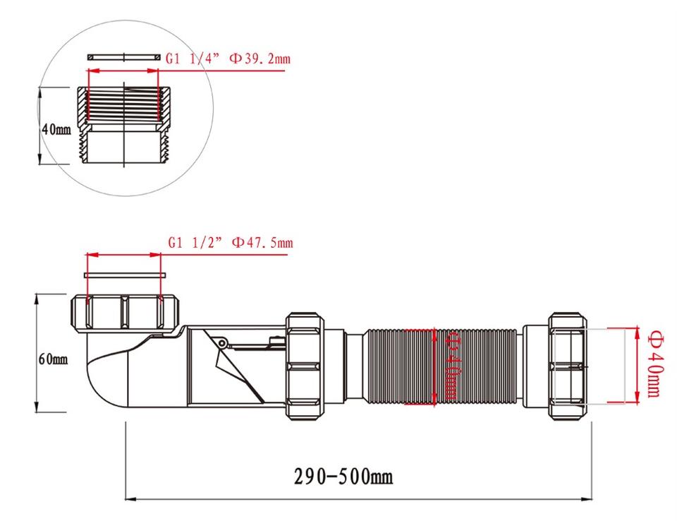 Name:space saving flexible waterless sink waste pipe