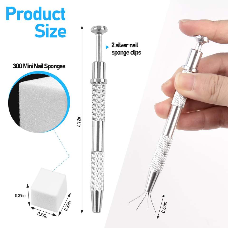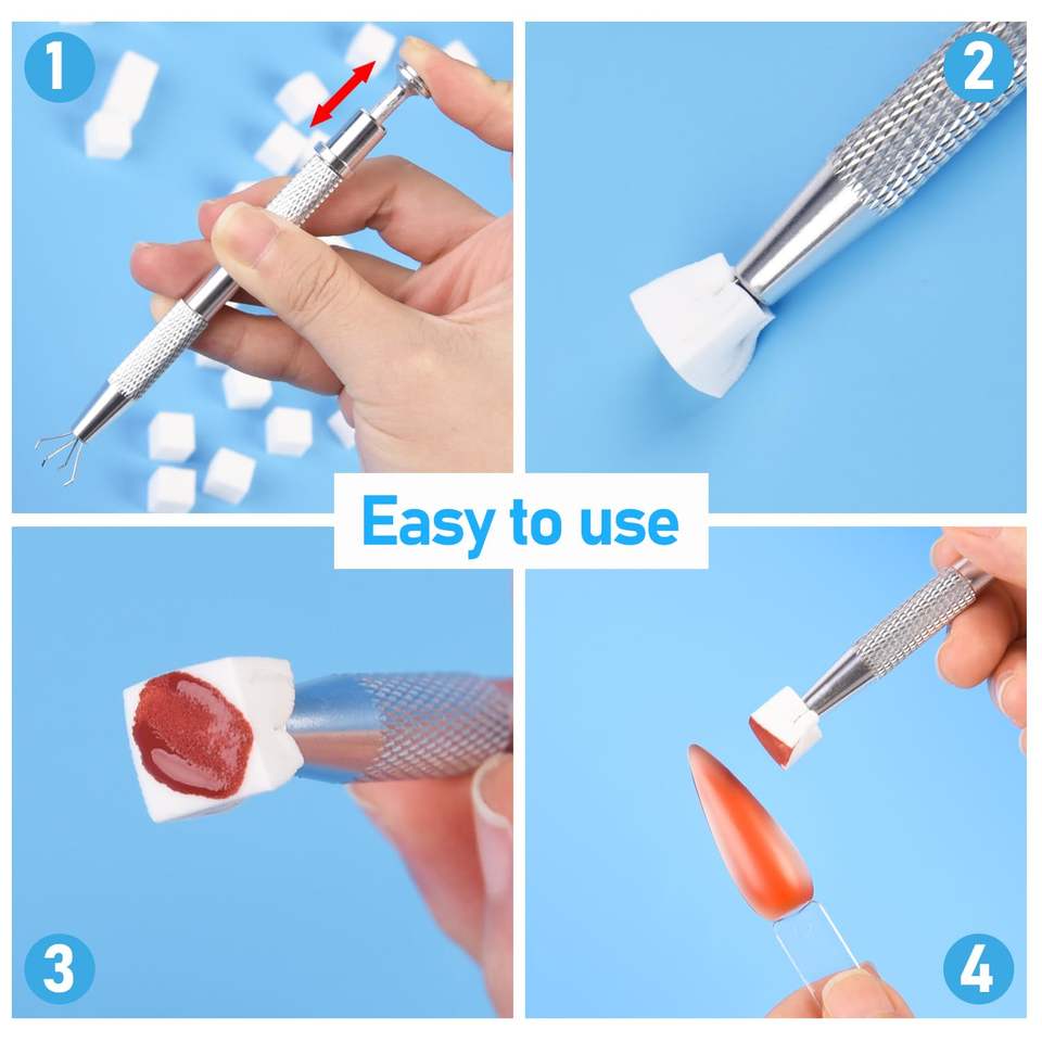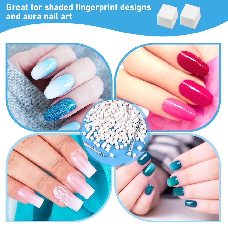 TAMAX NAT063 300 pièces Éponges à ongles en silicone souple pour la création de nail art ombré, 2 stylos applicateurs pour dégradé d'ongles