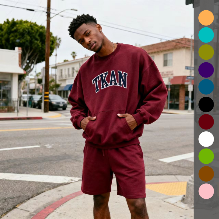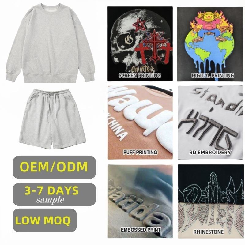 TKAN291 Fabricant Logo Personnalisé Impression Broderie 2 Pièces Hommes Ras Du Cou Streetwear Sweat À Capuche En Coton Surdimensionné Ensemble Short Survêtement