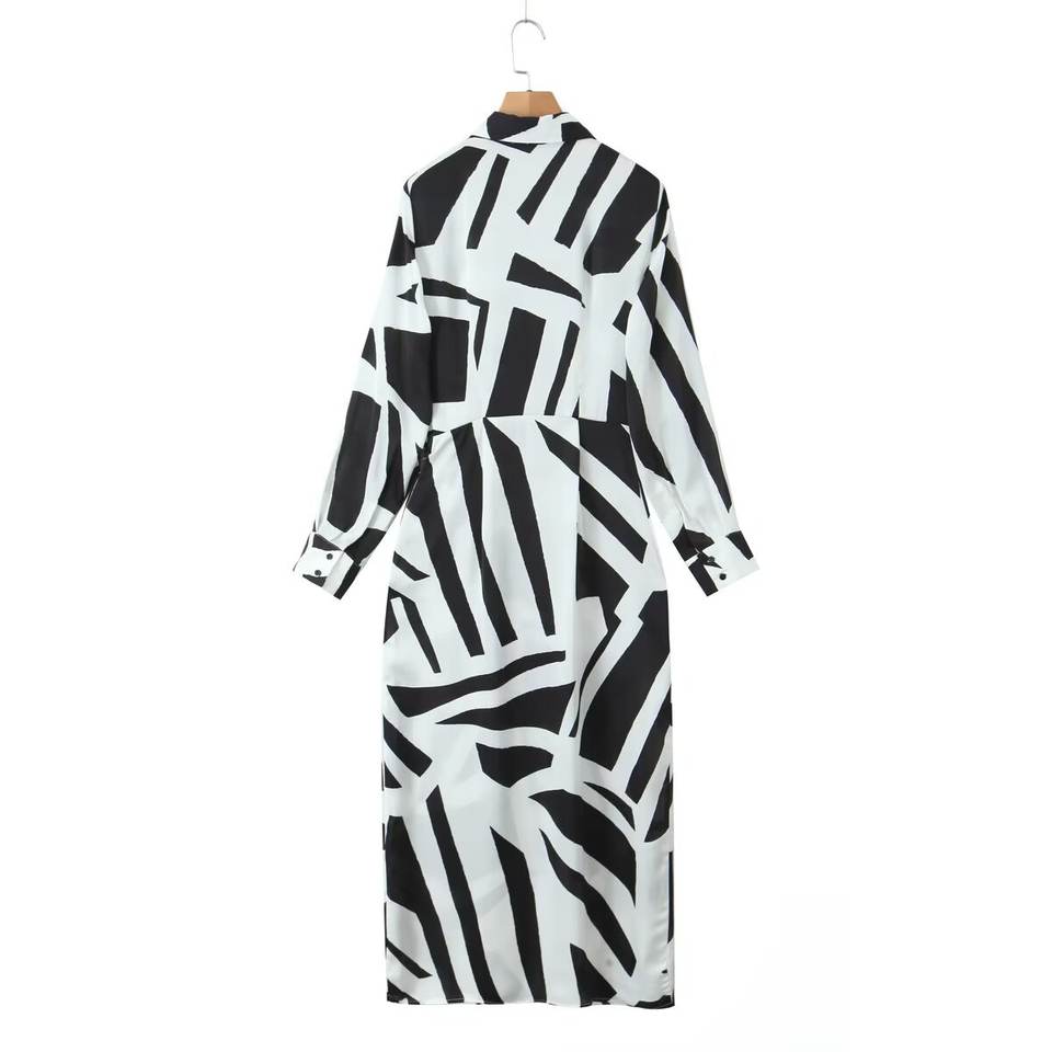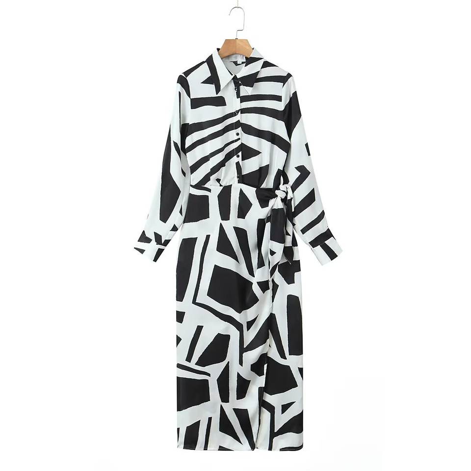 TAOP&ZA Nouvelle Collection Printemps 2026 – Robe Élégante en Satin Imprimé Zèbre à Boutonnage Simple et Ceinture à Nouer pour Femme 2443