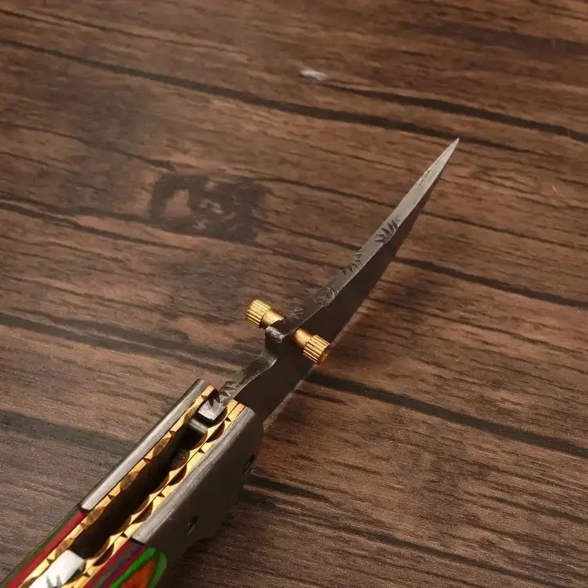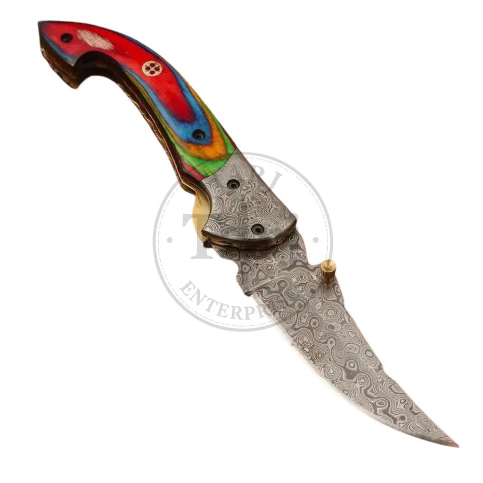 Couteau pliant TARJ en acier Damas fait main, conception OEM, verrouillage arrière, chasse allemande, haute durabilité, pointe tombante, Pakka 3