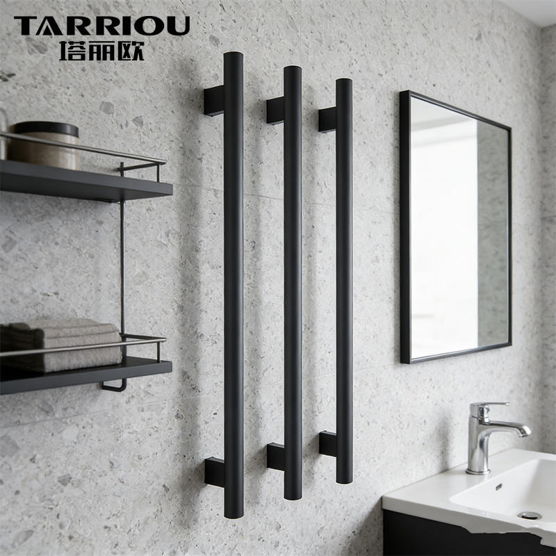 Porte-serviette unique en acier inoxydable noir mat TARRIOU pour salle de bain