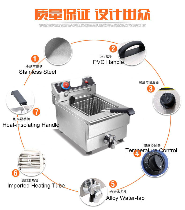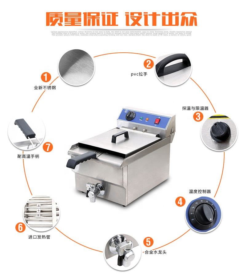 TARZAN Commercial Restaurant 13L Friteuse Électrique Ouverte avec Carter D'huile Monocylindre Grande Capacité Maison Chips