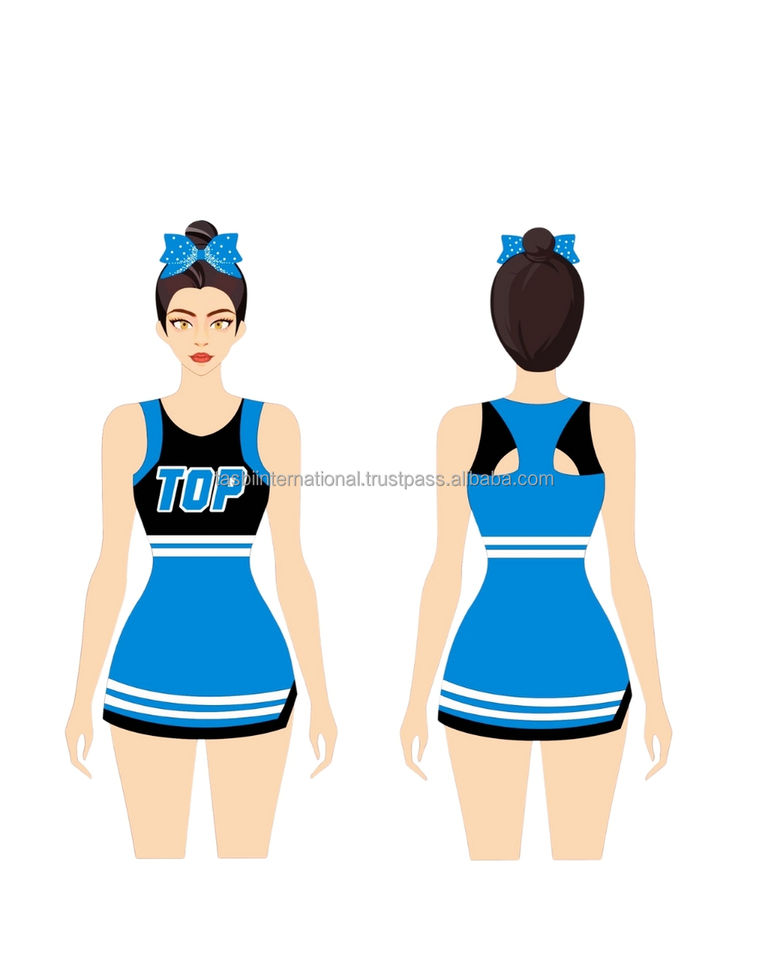 Uniformes de cheerleading pour filles TASBI INTERNATIONAL, 100% polyester, évacuation de l'humidité, séchage rapide, impression par transfert thermique, design personnalisé