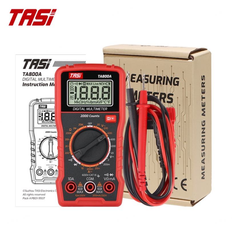 Multimètre numérique manuel TASI TA800A haute précision avec double protection par fusible, test de diode, fonction de maintien des données et mesure True RMS