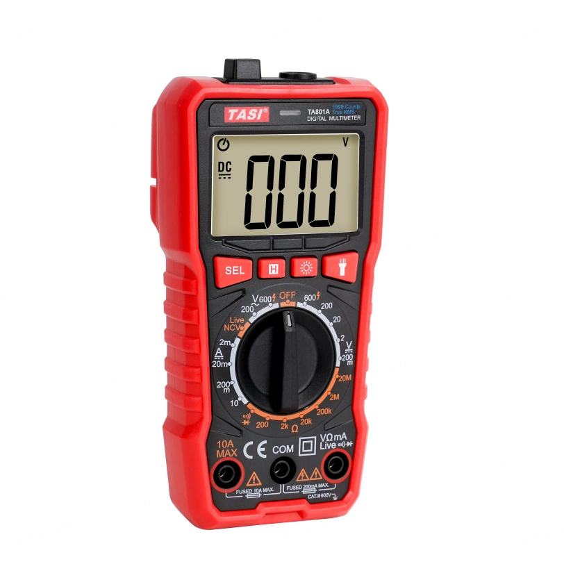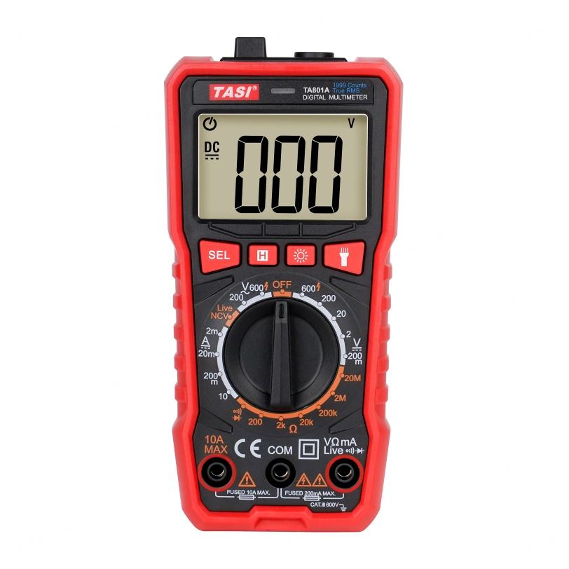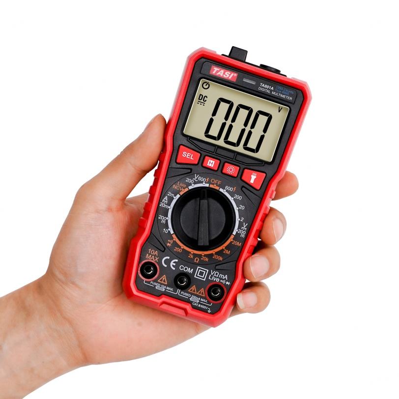 Multimètre numérique portable professionnel TASI TA801A avec écran LCD rétroéclairé, ampèremètre, voltmètre, testeur de tension AC/DC