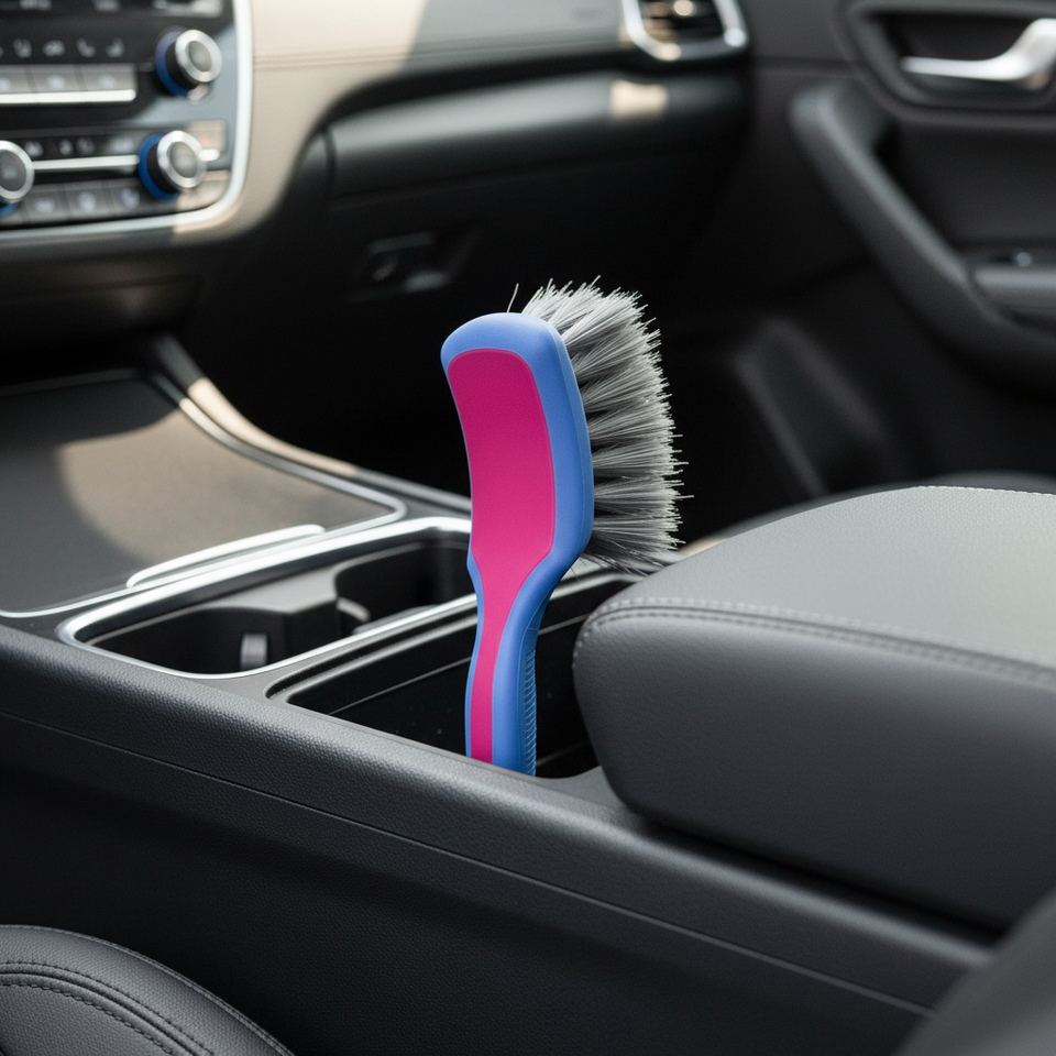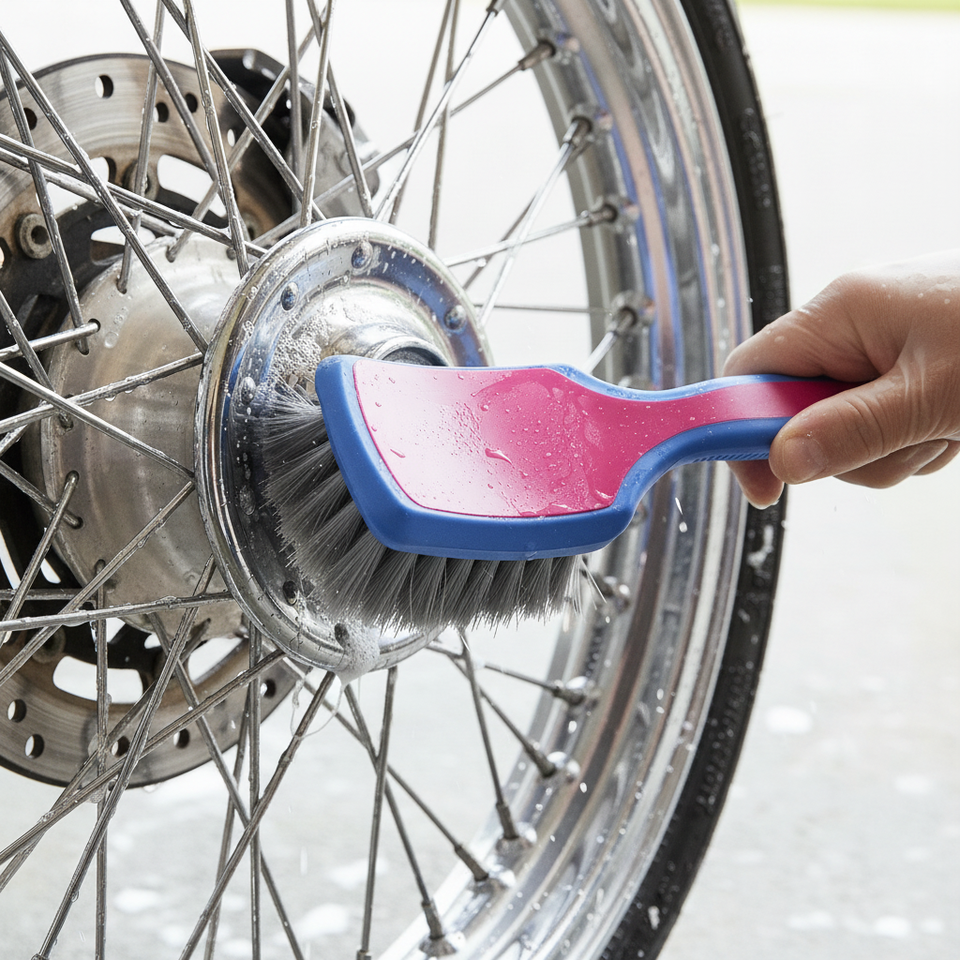 Brosse de detailing compacte pour jantes de voiture TB-PRO003, poils PE/PP/PBT, manche ABS moulé monobloc, poils ondulés, bleu-rose