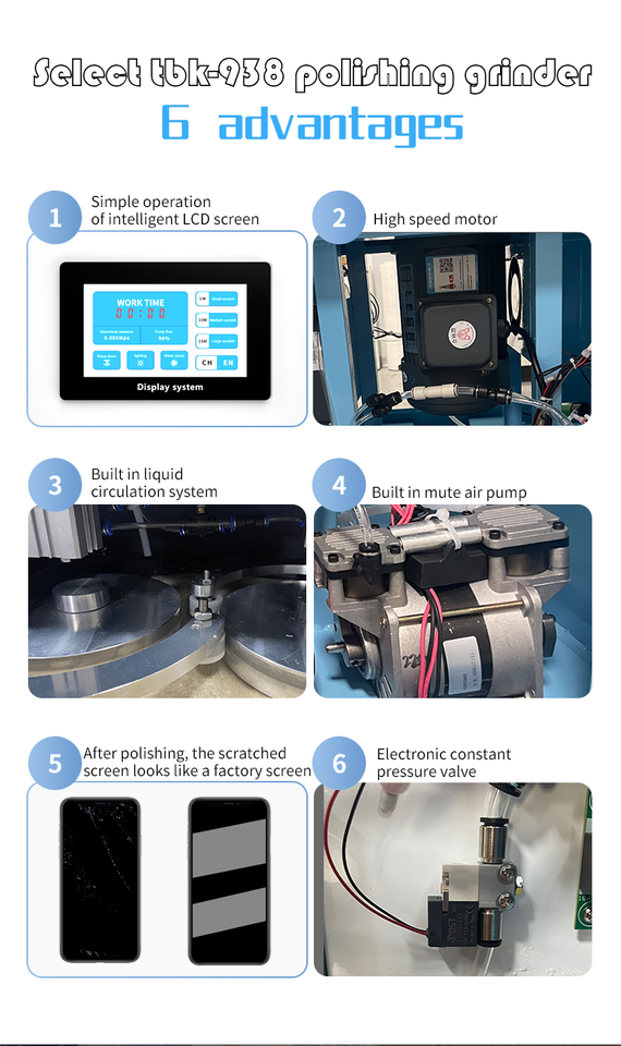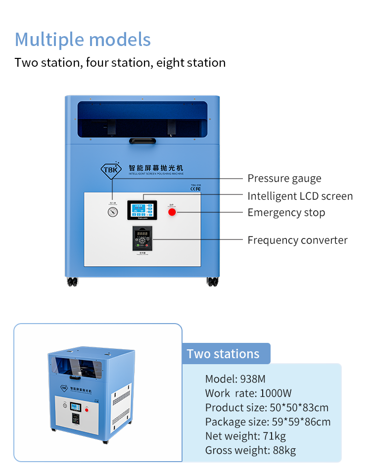TBK 938M Téléphone portable LCD Écran incurvé Machine de polissage Élimination des rayures pour iPhone Apple Watch Pad
