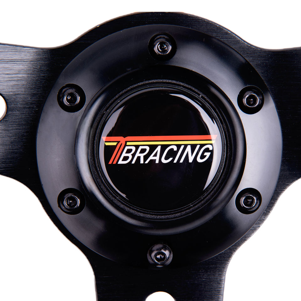 Volant de course sport en cuir personnalisé TBRACING SW-03 en noir avec dégagement rapide et bouton de klaxon pour la course