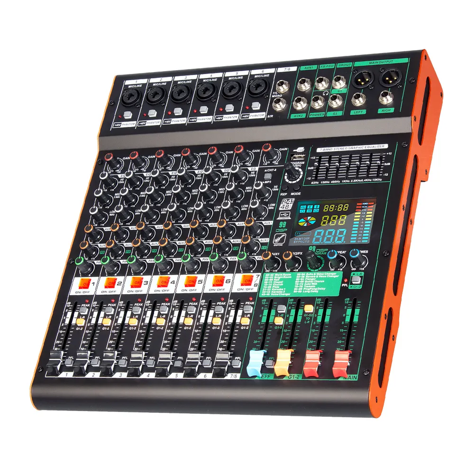 TC8 Console Audio Professionnelle 8 Canaux avec 99 Types d'Effets Intégrés, Contrôleur de Scène, Mixeur Audio DJ