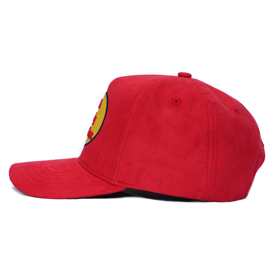 Casquette de baseball en daim rouge TCAP personnalisée de haute qualité à 5 panneaux avec broderie 3D et protection solaire