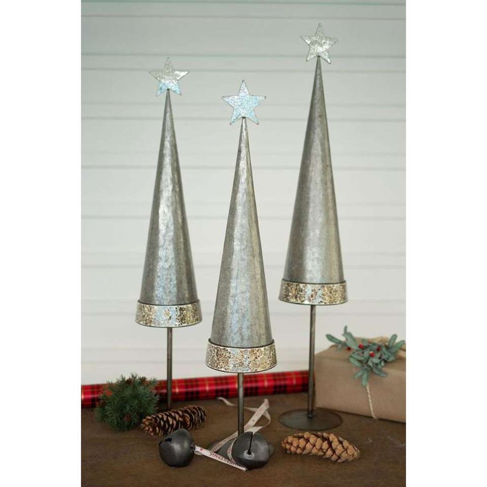 TCD Trending Rust Free Galvanized Christmas Tree Objects With Wood Base Decorative Table Items Metal Tree Accents in Best Prices
