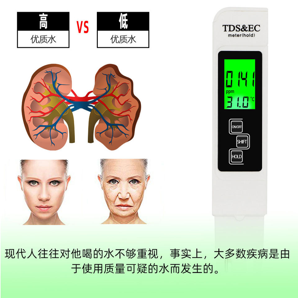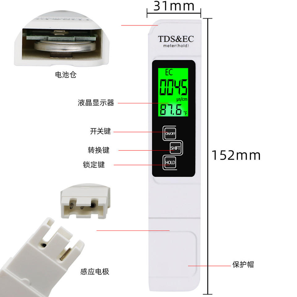 Stylo testeur de qualité de l'eau TDS EC, écran rétroéclairé 31x152mm avec mesure de la température pour l'analyse de l'eau