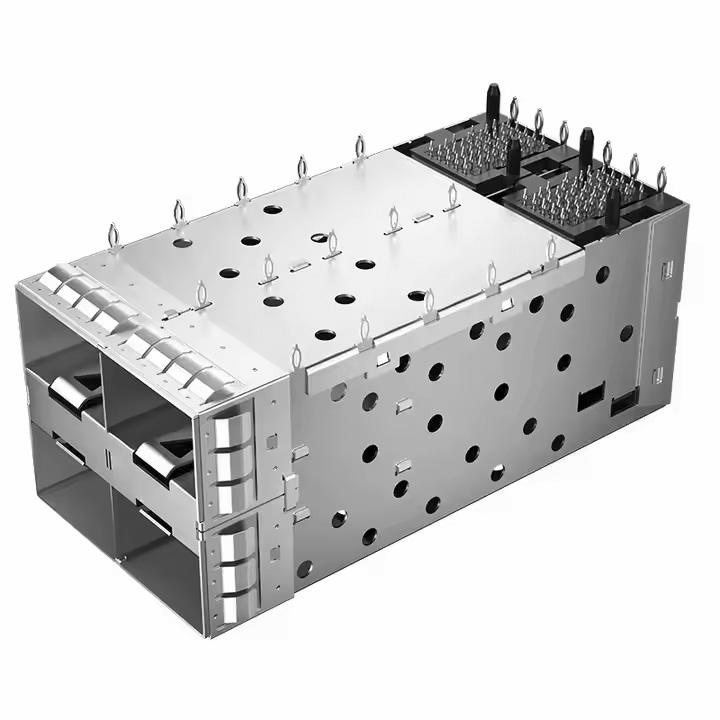 TE Remplacement 80P 2x2 Ports Press-Fit SFP + Cage avec connecteur intégré à travers l'équipement à fibre optique