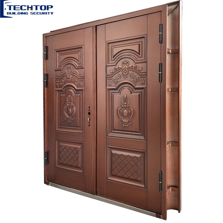Tech top — portes d'entrée double de qualité garantie, en acier personnalisé, fabriqué en chine