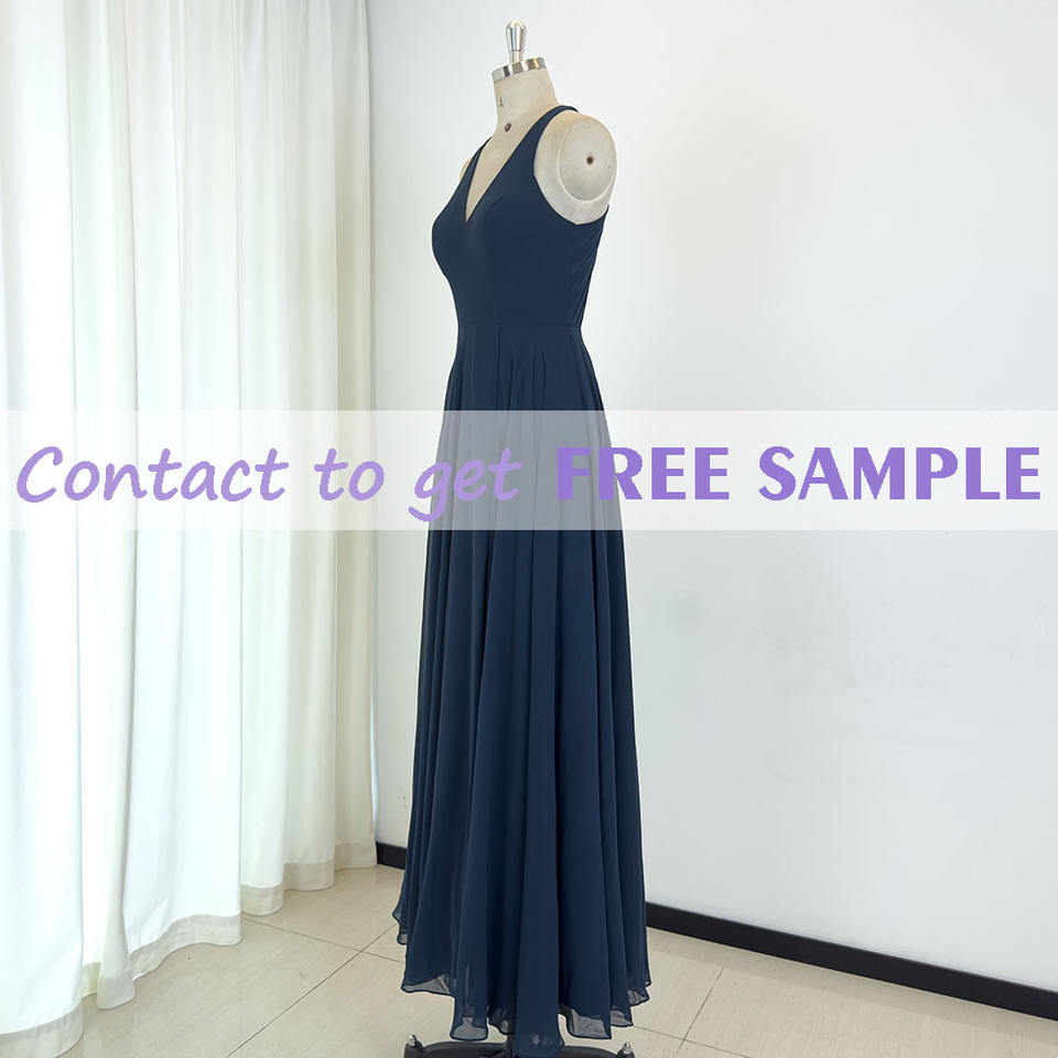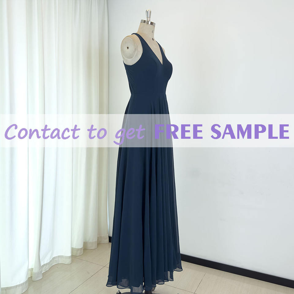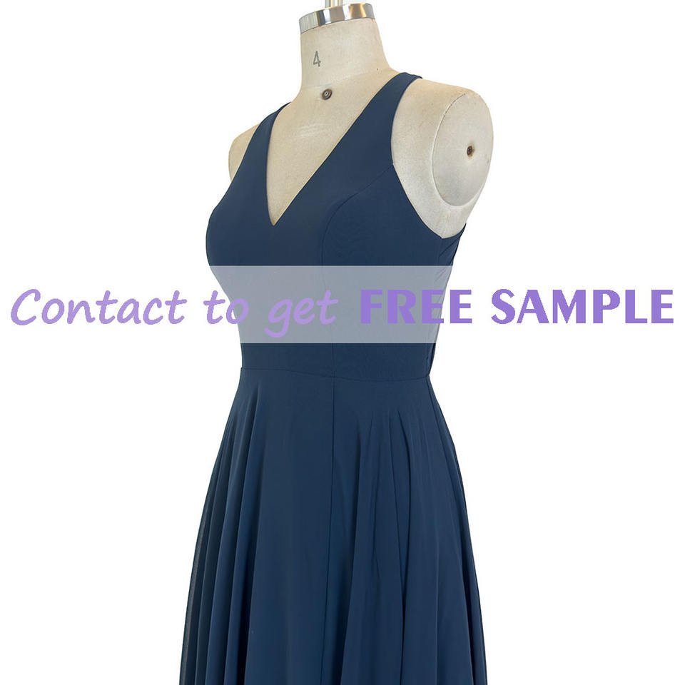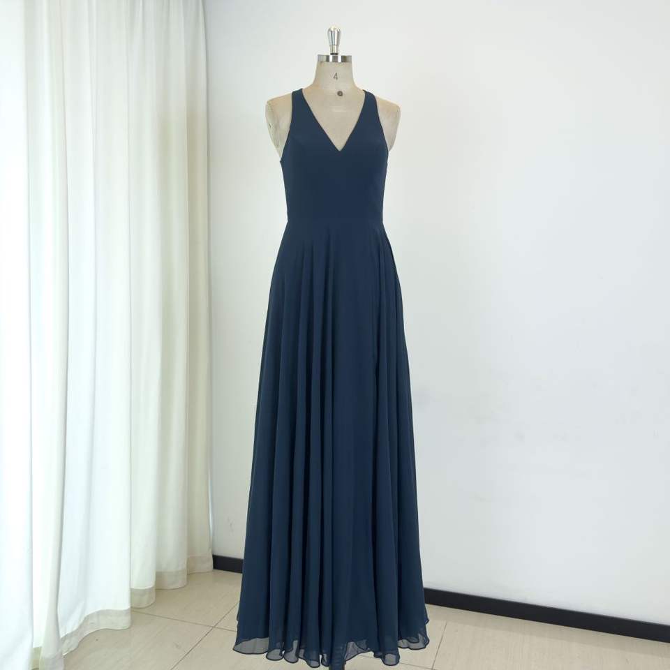 Robes de demoiselle d'honneur TEENYEE modernes et tendance en mousseline de soie avec fente latérale devant, col en V, bleu marine foncé, robe de soirée élégante