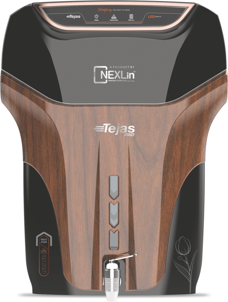Purificateur d'eau alcaline TEJAS PRO BLACK WOODEN RO avec affichage numérique, réservoir de 13 litres, technologie cuivre-zinc alcaline