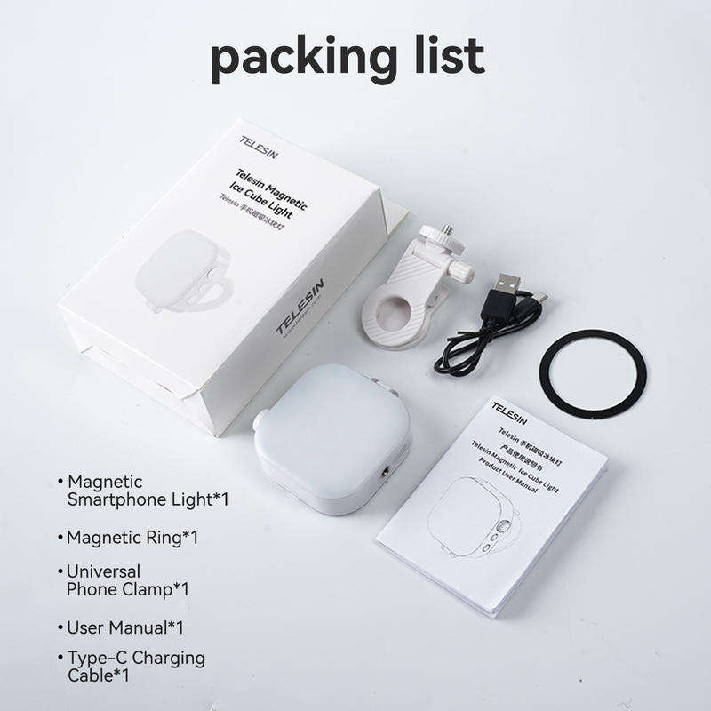 TELESIN 2025 Lampe d'appoint magnétique portable et pliable pour téléphone portable, 2000 mAh, multi-modes, réglable, éclairage photographique 2500-9000K