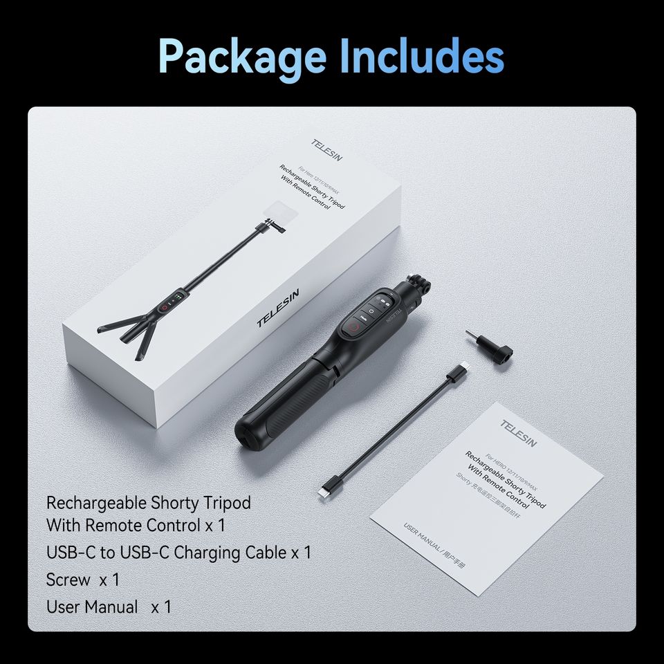 TELESIN Accessoires de caméra d'action pour Go Pro Hero12 11 10 9 Max 5000mAh Rechargeable Trépied Télécommande Selfie Stick