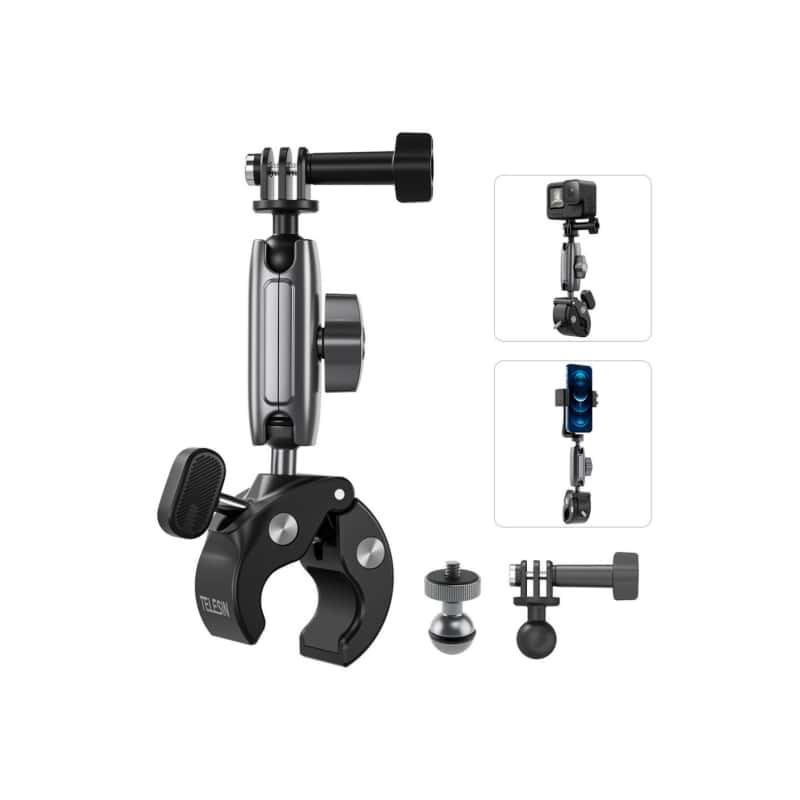 TELESIN GP Series Universal Tube Clamp Motorcycle Helmet Mount,1.2m 3m Carbon - Fiber Selfie Stick Camera Chest Strap