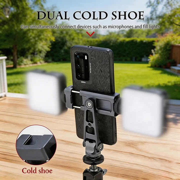Support de téléphone portable multifonction portable en métal pour griffe porte-accessoire, avec double griffe porte-accessoire et réglage horizontal et vertical à 360°