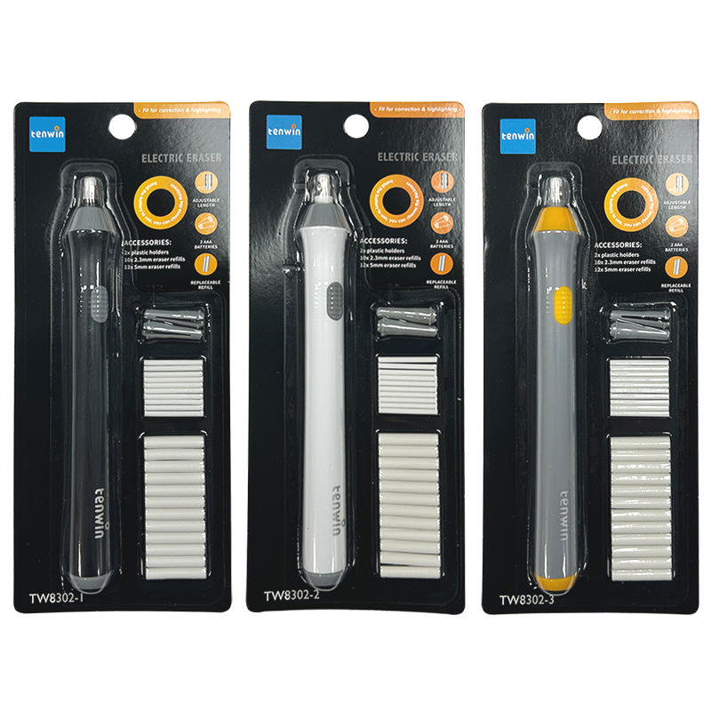 TENWIN 8302 Ensemble de stylos gomme électrique sans poussière deux recharges 5 & 2.3mm Croquis Dessin Art Highlight Remplacer la batterie en caoutchouc