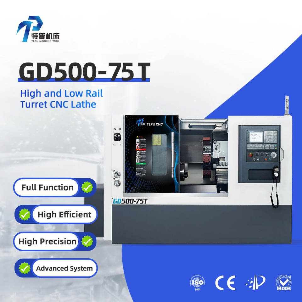 Tour à métaux CNC à lit incliné à 2 axes de haute qualité TEPU GD500-75T, tour à métaux à tourelle inclinée