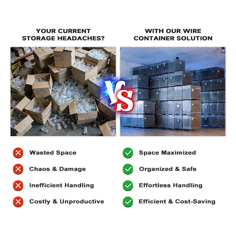 Conteneur en fil métallique préformé en acier doux Q235 galvanisé à chaud, durable pour le transport de métaux, avec guide pour chariot élévateur