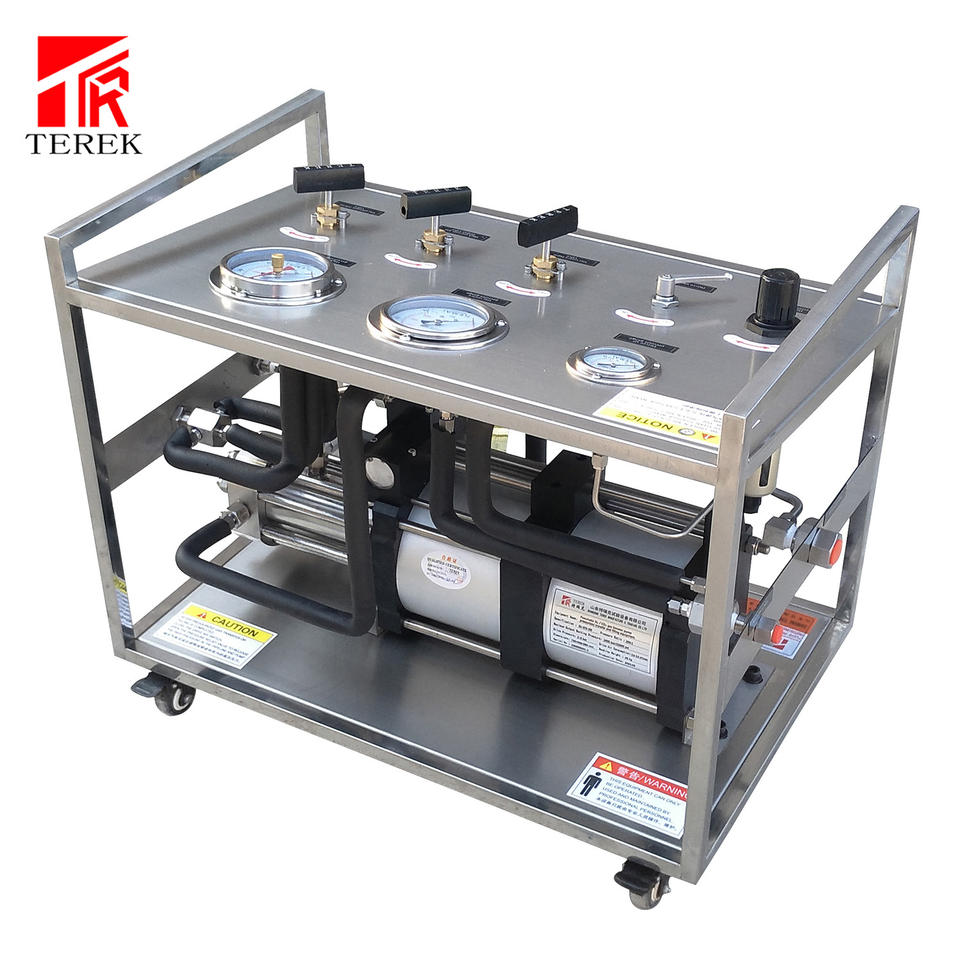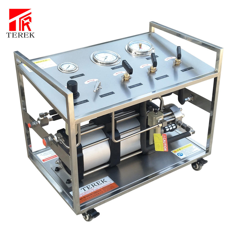 Pompe de surpression TEREK à cadre en acier inoxydable haute pression, cylindre pneumatique à double entraînement pour équipement de remplissage et de test de gaz